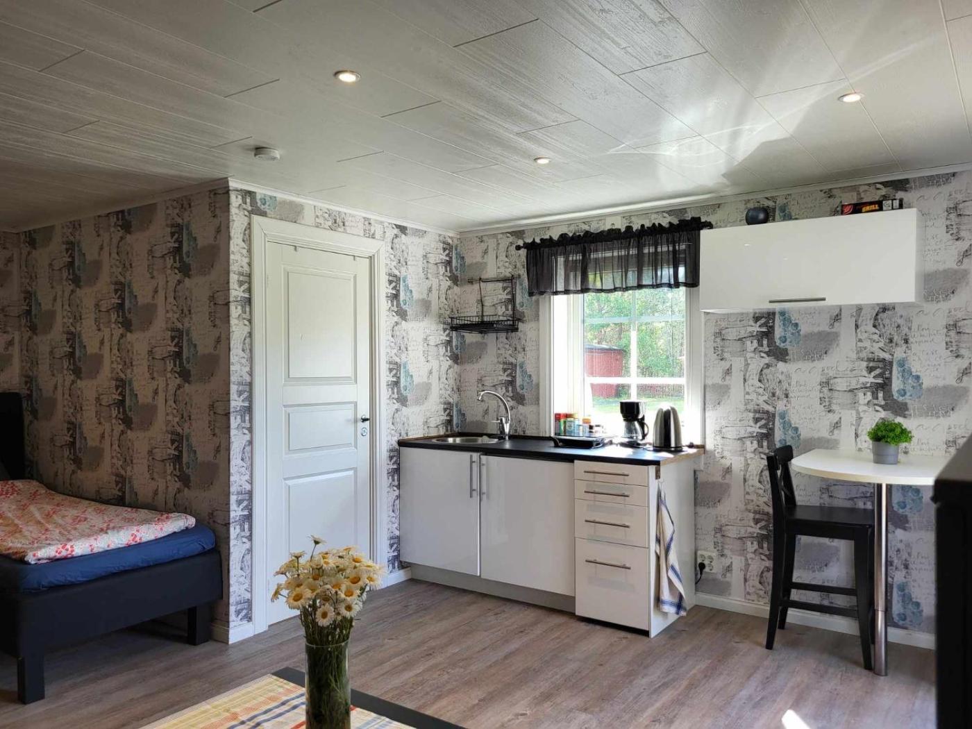 One-Bedroom House. This holiday home consists of 1 bedroom, kitchen, a terrace and 1 bathroom with a shower. Guests can make meals in the kitchen that is equipped with a stovetop, a refrigerator, kitchenware and a microwave. Among the room amenities are a private entrance, soundproof walls, a tea and coffee maker as well as a patio and garden views. The unit offers 2 beds.