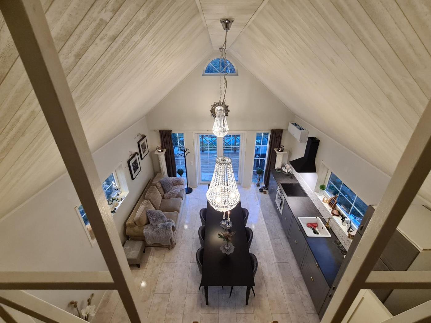 The holiday home with a patio and lake views has 2 bedrooms, 3 living rooms, a flat-screen TV, an equipped kitchen with a dishwasher and a fridge, and 1 bathroom with a hot tub. Guests can take in the ambience of the surroundings from an outdoor dining area. This holiday home is allergy-free and non-smoking.