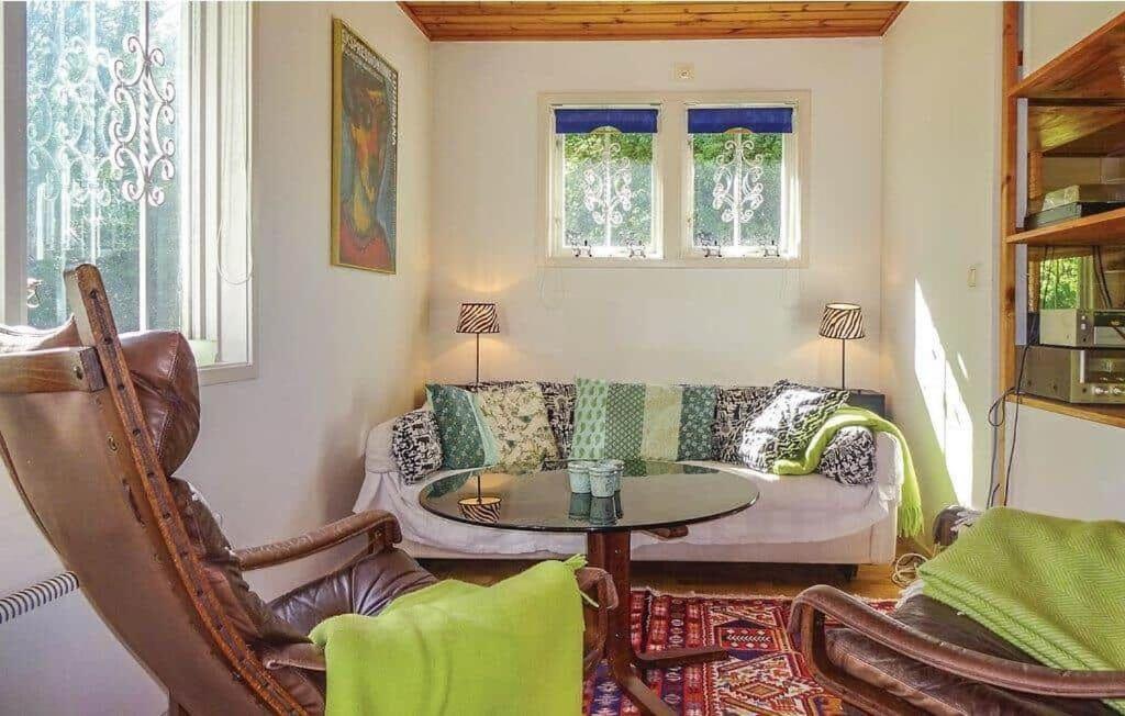 Holiday Home. Boasting 3 bedrooms and 1 bathroom with a shower, this holiday home has a well-fitted kitchenette and a terrace. Guests will find a stovetop, a refrigerator, an oven and a microwave in the well-fitted kitchenette. The holiday home also includes a barbecue. This holiday home has a washing machine, a tea and coffee maker, a TV and outdoor furniture. The unit offers 4 beds.